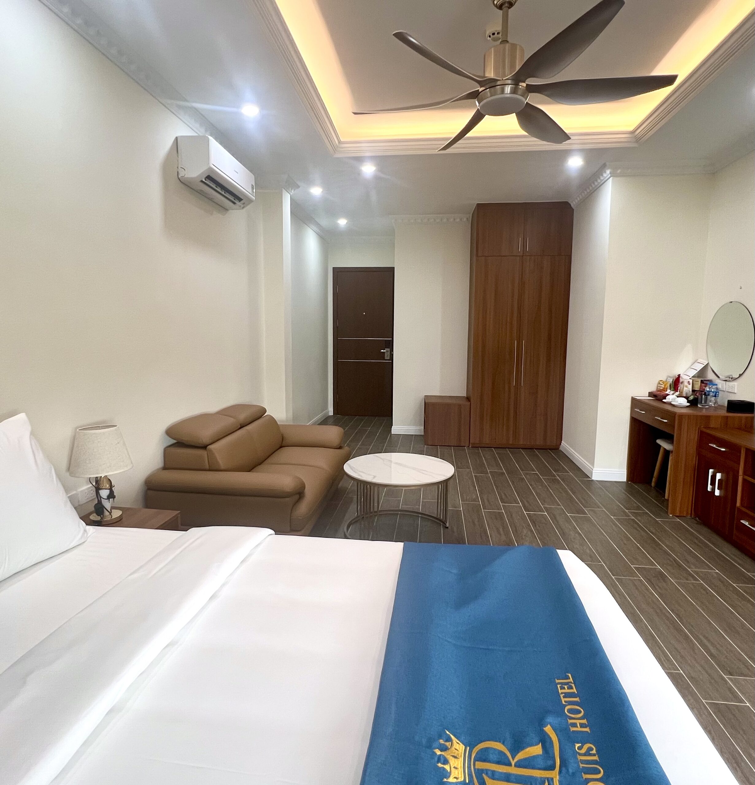 Nằm tại trung tâm khu vực Đại Mỗ, Nam Từ Liêm, Hà Nội, khách sạn Royal Louis Hotel mang đến không gian lưu trú lý tưởng với phong cách cổ điển nhưng hiện đại, sạch sẽ và thoáng đãng. Mỗi phòng đều được trang bị đầy đủ các thiết bị cao cấp như điều hòa, tivi màn hình 4k, wifi tốc độ cao và nội thất tinh tế, góp phần mang lại trải nghiệm thoải mái, tiện nghi cho khách hàng.